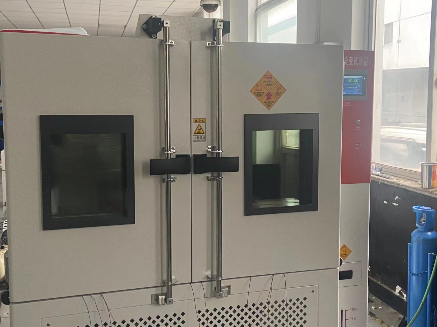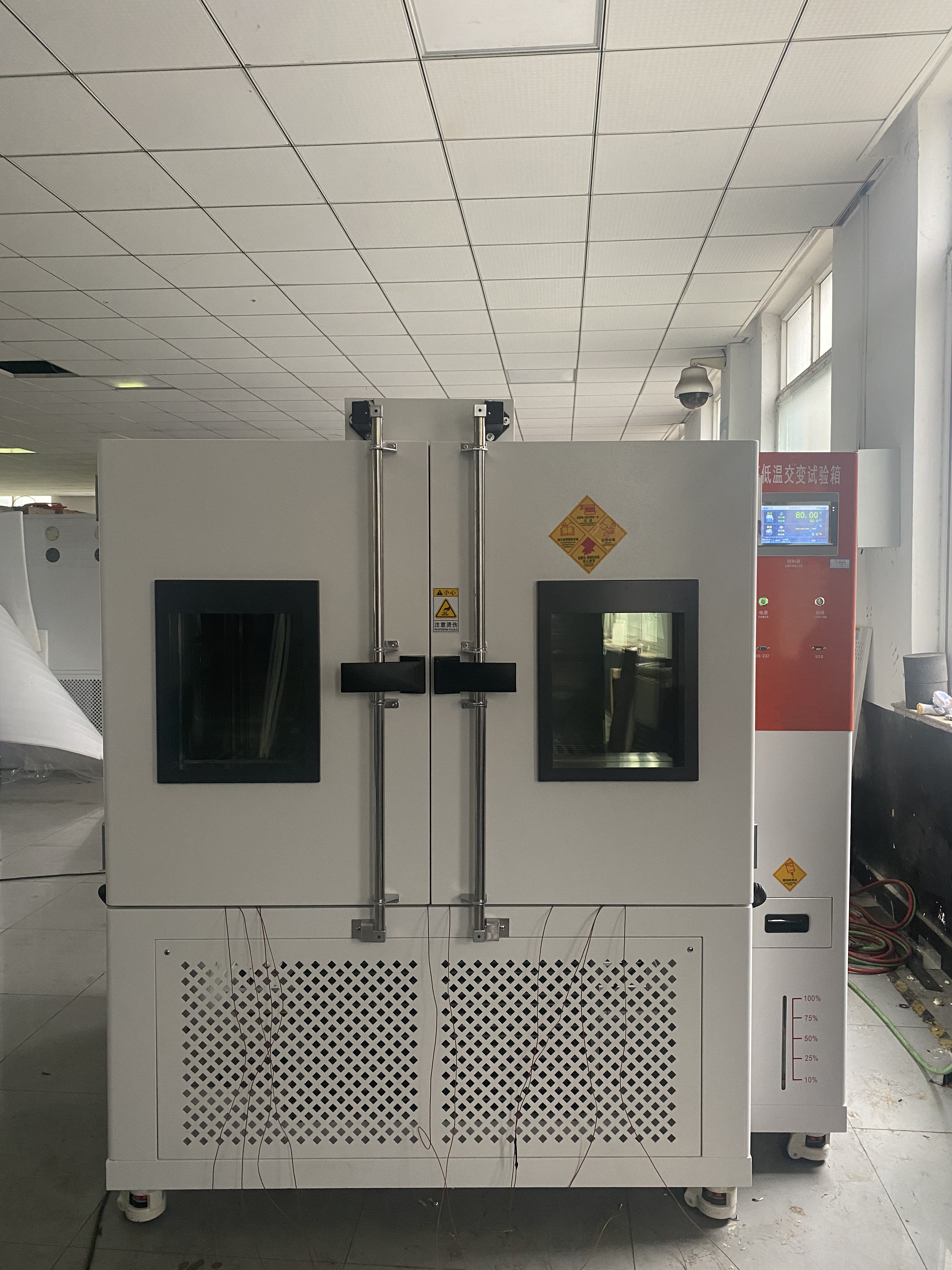 此次秀強(qiáng)玻璃工藝股份有限公司與我們合作,采購高低溫交變濕熱試驗箱672L,-40℃-150℃,做定制雙開門款,下為設(shè)備交貨前調(diào)試圖: