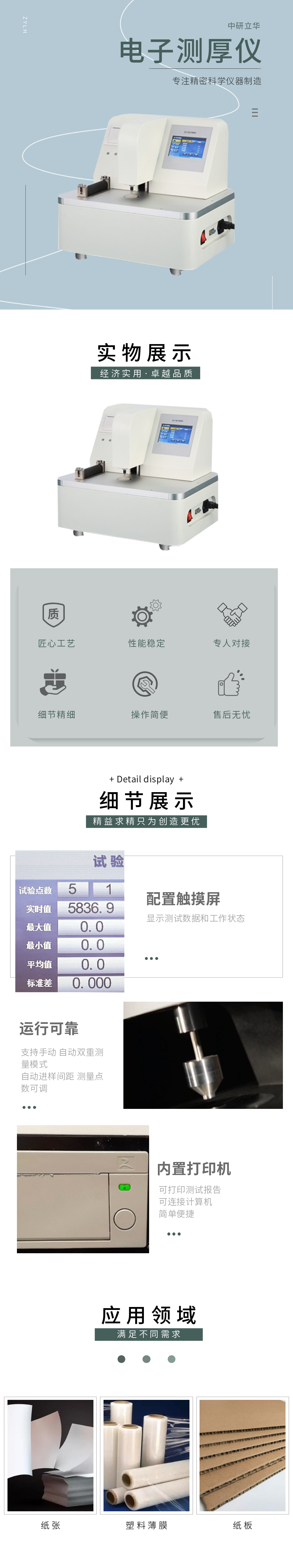 用途:電子測厚儀是一種集光、機、電、算為一體的高精度數字測厚儀,操作方便。測量結果為數字顯示。并且可以連接計算機進行自動控制。主要用于對塑料薄膜,紙張等材料厚度測量或比較測量。