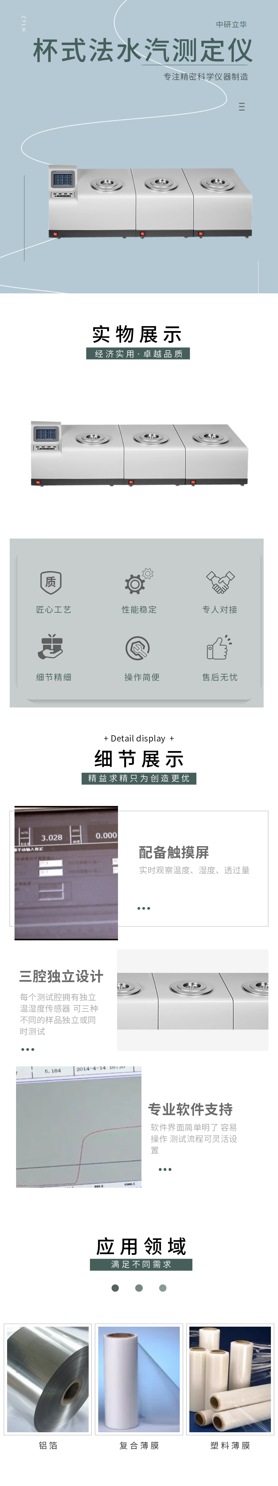 用途:測定薄膜或薄片材料的水汽透過率(量)用于塑料薄膜、復合薄膜、鋁箔、鍍鋁膜,各種片材、板材、橡膠、陶瓷,包裝容器。應用于質檢、藥檢、科研、包裝、薄膜、食品、藥品、電子等行業(yè)